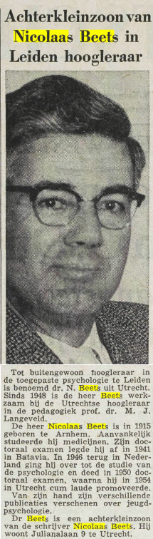 | De middelbare school bezocht hij in Batavia en hij studeerde er ook medicijnen – met uitzondering van 2 jaren doctoraalstudie in Leiden. Direct na het artsexamen in 1941 volgde een korte, actieve krijgservaring op Java als reserve-officier van gezondheid bij het KNIL en daarna was hij 3½ jaar in Japanse krijgsgevangenschap op Java en in Singapore en Thailand. Van 1948 - 1962 was hij medewerker van Langeveld aan het Pedagogisch Instituut van de rijksuniversiteit te Utrecht. Hij deed het doctoraal examen psychologie en in 1954 promoveerde hij bij Langeveld cum laude aan de Faculteit der letteren en wijsbegeerte op het proefschrift ‘De jongen in de puerale periode’. Van 1961/1962-1976 was hij buitengewoon hoogleraar aan de rijksuniversiteit te Leiden met als leeropdracht: Behandelingsmethoden in de jeugdjaren (algemene psychodiagnostiek). Tevens praktizeerde hij als psychotherapeut in Utrecht. In 1965, 1967 en 1969 was hij gastdocent aan de Duquesne University in Pittsburgh (Pennsylvania, V.S.). |